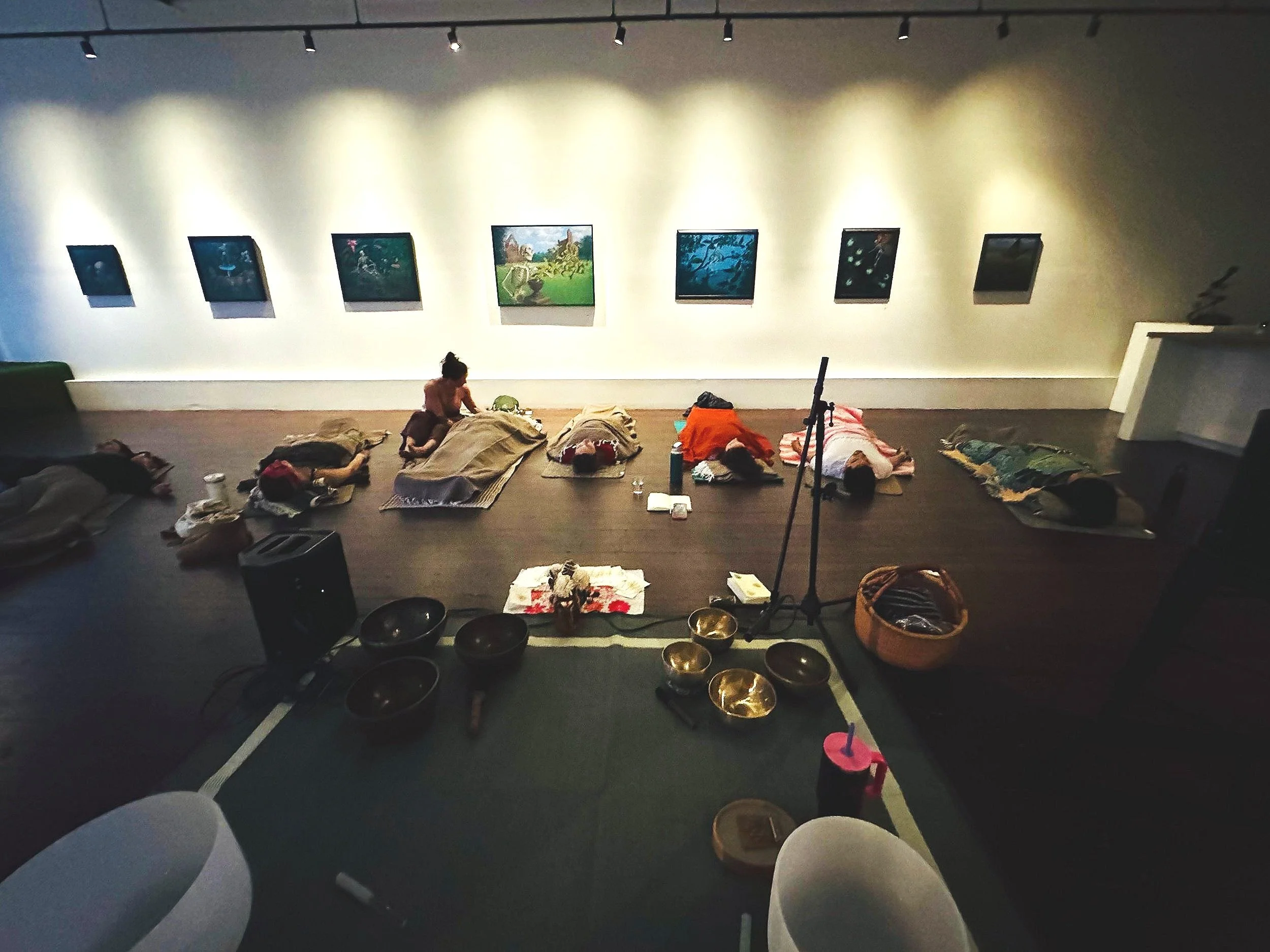 Email cho@homenote.love to book a private group session in your home, business, backyard, or open space. My studio can also hold up to 6 people laying down and up to 10, with some laying down and some sitting in chairs.